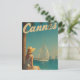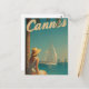 Dieses elegante Vintage-Poster zeichnet den zeitlosen Charme Cannes an der Côte d'Azur aus. Eine Frau in einem klassischen Kleid aus den 50er Jahren sitzt anmutig und blickt über den Hafen mit seinen eleganten Segelbooten. Das warme mediterrane Licht, die Pastelltöne und die Retrotexturen erinnern an das goldene Zeitalter der Riviera. Eine romantische und nostalgische Hommage an Stil und Küstensteleganz - ideal für Liebhaber Vintager Mode und französischer Meeresszenen.