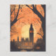 Diese Reise-Postkarte zeigt eine ruhige und warme Abbildung, die die Londoner Skyline mit der Silhouette des Big Ben darstellt. Es ist eine großartige und romantische Postkarte für Reisende, die London besuchen wollen, oder für diejenigen, die London bereist haben und eine Postkarte an ihre Familie oder Freunde schicken.