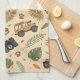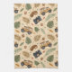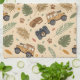 Rustikales, reiseinspiriertes Küchenhandtuch mit altmodischen Autos, Vintage-Verkehrsschildern, Blättern und Retro-Abenteuerelementen im charmanten Landhausstil. Ideal für Roadtrip-Enthusiasten, Vintage-Liebhaber, Reisende und alle, die nostalgische Reiseästhetik lieben.