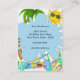 Eine helle und nette Visitenkarte für die Reise- oder Erholungsortindustrie. Blaue Spritzenmitte der Ausrüstungsbeschreibungen mit Grenze der Palme, der lächelnden Sonne und der Strandeinzelteile. Graphics© http://www.delightful-doodles.com/