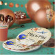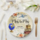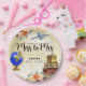 Reisen von Miss zu Mrs. Brautparty Papier Teller. Abenteuer Gepäckkugel Flugzeug Pass Aquarell Blumendesign. Brautparty zum Thema Reisen.