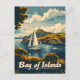 Eine faszinierende Vintage Darstellung der Bucht von Neuseeland, bekannt für ihre atemberaubende Küstenlandschaft und ihre historische Bedeutung. Das Design zeigt das unberührte türkisfarbene Wasser der Bucht, das von üppig grünen Inseln übersät ist und von rauen Küstenlinien und abgelegenen Stränden gerahmt ist. Das Kunstwerk ist in einem nostalgischen Stil gehalten und spiegelt die ruhige Schönheit und den abenteuerlichen Geist dieses berühmten neuseeländischen Reiseziels wider.