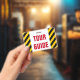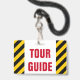 Dieses AbzeichenAusrüstungsbeschreibungen ein schwarzes und gelbes gestreiftes Muster, zusammen mit der Mitteilung "AUSFLUG-FÜHRER" im mutigen roten Text. Er könnte von jemand möglicherweise getragen werden, das den Touristen oder den Besuchern Ausflüge gibt.