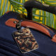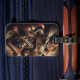 Ein Krokodil-Erholungen auf einer Ledertasche, scheinbar abenteuerbereit. Eine Vintage Kamera und andere wichtige Reiseziele liegen in der Nähe, was darauf hindeutet, dass eine spannende Reise in Kürze beginnen wird.