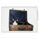 Schwarz-Weiß-Katze in einem alten Koffer, der will zu reisen oder mitzunehmen
