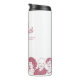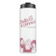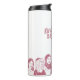 Reisetug, rosa auf weiß, mit sieben Zeichen.