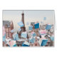 Wenn Sie nicht reisen können, können Sie die Welt durch Bücher erleben, die hier in einer Pariser Szene mit dem Eiffelturm im Hintergrund dargestellt sind. Eine skurrile Schöpfung.