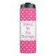Reisen ist meine Therapie moderne rosa und weiße P Thermosbecher