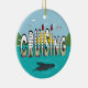 Im Kreuzfahrtstil wird das Wort "Kreuzfahrt" verwendet, um ein Kreuzfahrtschiff zu schaffen, das zu exotischen ausländischen Reisezielen über die blaue See fährt. Umfasst Sonne, Anker, Dampfkanäle und Kabinenportholen, um eine lustige Grafik für die Fans von Kreuzfahrten zu schaffen.