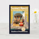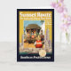 Reiseplakat für die Sunset Route mit Bahn und Schi Karte