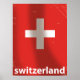 Altes Vintage Reiseplakat im Schweizer Stil. Die Schweiz überquert die Flagge.