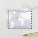 Schicken Sie jemandem gute Nachrichten mit dem Design einer weißen Weltkarte, einem kleinen Flugzeug und einem maßgeschneiderten Zitat "Alles Gute aus..."