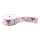 Feiern Sie Reitsportler und alle, die Pferde und Reiten Lieben in Stil mit diesem gemusterten Band. Es zeigt Abbildungen von Reitausrüstung in hübschen Tönen von lila, Lavendel, Magenta rosa und pfirsichfarben mit entsprechenden Blumenakzenten.