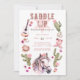 Feiern Sie Ihren ersten Geburtstag mit dieser rustikalen Saddle Up Einladung mit einem Aquarellpferd, Kakteen, Stiefeln, Gitarre und rosa Blumen. Ideal für ein Western-Party zum 1. Geburtstag auf der Ranch oder auf dem Bauernhof. Vollständig anpassbar für Ihre Veranstaltungsdetails.