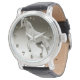 Uhr, Klassische Damenuhr mit schwarzen Lederarmband