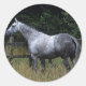 Reitpferd Stehend von Zaun Runder Aufkleber