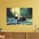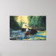 Reitpferd und Angusrinder und Fluss Leinwanddruck