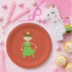 Pappteller, der eine Prinzessin hält ihr grünes Kleid kennzeichnet. © Stimmung 4 niedlich
