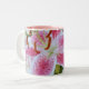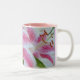 Rosa u. weiße Stargazer-Lilienen-Kaffee-Tasse auf einem Rosa zeichnete Tasse