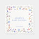 Reizende Pastell-Wildblumengarten-Baby-Shower-Servietten. Diese eleganten Baby-Shower-Papierservietten zeigen einen weichen Wasserfarben-Wildblumenkranz mit zarten Pastellblumen und anmutiger Typografie. Das leichte, luftige Design verleiht Ihrem Baby-Shower-Tischsetting Charme und Raffinesse.