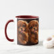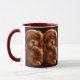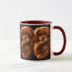 Reizender Ruby Cavalier Spaniel Becher. Der Spaniel leckt seine Pfote in einer süßen Pose.