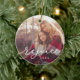 Das schlichte und elegante Urlaubssornament verfügt über ein Foto auf beiden Seiten, das sich in weißen Schriftzeichen überlagert. Personalisiert mit dem Jahr unten.