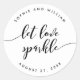 Gastgeschenk Hochzeit Aufkleber mit den Worten "Liebe lass funkeln" in einer entspannenden kursiven Schrift in schwarz vor weißem Hintergrund. Personalisieren Sie es, indem Sie den Platzhalter-Text ersetzen. Für weitere Optionen, wie zum Beispiel den Schriftart zu ändern und ihn zu verändern, erweitern Sie die /Contract-Kurve oder den Abstand zwischen den Buchstaben, klicken Sie auf die Schaltfläche "Anpassen". *Bitte beachten Sie, dass das Zazzle-Wasserzeichen, das in der Zoomvorschau angezeigt wird, NICHT auf dem gedruckten Endprodukt erscheint. © Rosewood and Citrus