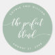 Gastgeschenk Hochzeit Aufkleber mit den Worten "die perfekte Mischung" in einem entspannenden kursiven Skript in Weiß vor einer bearbeitbaren Hintergrundfarbe (klicken Sie auf Anpassen, um Zugriff zu erhalten). Personalisieren Sie es, indem Sie den Platzhalter-Text ersetzen. Für weitere Optionen, wie zum Beispiel den Schriftart zu ändern und ihn zu verändern, erweitern Sie die /Contract-Kurve oder den Abstand zwischen den Buchstaben, klicken Sie auf die Schaltfläche "Anpassen". *Bitte beachten Sie, dass das Zazzle-Wasserzeichen, das in der Zoomvorschau angezeigt wird, NICHT auf dem gedruckten Endprodukt erscheint. © Rosewood and Citrus