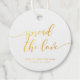 Gastgeschenk Hochzeit-Tags mit den Worten "Spread the Liebe" in einem entspannenden kursiven Skript in Folie vor einem weißen Hintergrund. Personalisieren Sie es, indem Sie den Platzhalter-Text ersetzen. Für weitere Optionen, wie zum Beispiel den Schriftart zu ändern und ihn zu vergrößern oder zu verändern, klicken Sie auf den Button "Anpassen". *Bitte beachten Sie, dass das Zazzle-Wasserzeichen, das in der Zoomvorschau angezeigt wird, NICHT auf dem gedruckten Endprodukt erscheint. © Rosewood and Citrus