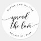Hochzeitsaufkleber mit der Aufschrift "Spread the Liebe" in einer entspannenden kursiven Schrift in schwarz auf weißem Hintergrund. Personalisieren Sie es, indem Sie den Platzhalter-Text ersetzen. Für weitere Optionen, wie zum Beispiel den Schriftart zu ändern und ihn zu verändern, erweitern Sie die /Contract-Kurve oder den Abstand zwischen den Buchstaben, klicken Sie auf die Schaltfläche "Anpassen". *Bitte beachten Sie, dass das Zazzle-Wasserzeichen, das in der Zoomvorschau angezeigt wird, NICHT auf dem gedruckten Endprodukt erscheint. © Rosewood and Citrus
