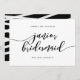 Stilvoll werden Sie meine Junior Bridesmaid-Karte mit den Worten "Junior Bridesmaid" in einem entspannenden kursiven Skript in schwarz auf einem weißen Hintergrund. Die Karte hat eine schwarze Rückseite mit überlappenden weißen Linien. Personalisieren Sie es, indem Sie den Platzhalter-Text ersetzen. Für weitere Optionen, wie zum Beispiel den Schriftart zu ändern und ihn zu vergrößern oder zu verändern, klicken Sie auf den Button "Anpassen". *Bitte beachten Sie, dass das Zazzle-Wasserzeichen, das in der Zoomvorschau angezeigt wird, NICHT auf dem gedruckten Endprodukt erscheint. © Rosewood and Citrus