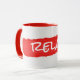 RELAX Text auf roten Farbstrich auf weißem Hintergrund. Text wird bearbeitet