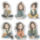 This cozy sticker sheet features a cute chibi-style girl in 6 different sitting poses, designed with soft colors and a calm, relaxing aesthetic.