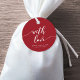 Gastgeschenk Hochzeit Tags mit den Worten "Mit Liebe" in einem entspannenden kursiven Skript in Weiß vor einem bearbeitbaren Hintergrund Farbe (klicken Sie auf anpassen, um die Farbe der beiden Seiten zu ändern). Personalisieren Sie es, indem Sie den Platzhalter-Text ersetzen. Für weitere Optionen, wie zum Beispiel den Schriftart zu ändern und ihn zu vergrößern oder zu verändern, klicken Sie auf den Button "Anpassen". *Bitte beachten Sie, dass das Zazzle-Wasserzeichen, das in der Zoomvorschau angezeigt wird, NICHT auf dem gedruckten Endprodukt erscheint. © Rosewood and Citrus