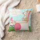 Die Kunst des Künstlers Kristie Hubler auf dem Kissen - auf der einen Seite entspannt sich die Sonne gegen einen lockigen Baum, auf der anderen Seite entspannt sich der Osterhase in einem Hasen- und Ei-Stil mit seinen rosa, sonnigen Hausschuhen auf den Füßen und denkt: "Whew! Ich bin froh, dass meine Arbeit erledigt ist!"