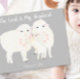 Christlich Der Herr ist mein Hirte Psalm 23 Postcard Religious Scripture Inspiration Zitat. Niedliche Schaffamilie mit bezauberndem Lamm und rosa Herzen auf grauem Hintergrund