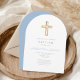 Religiöse Cross Baby Blue Script Boy Taufe Arch Einladung