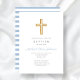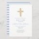 Personalisierte religiöse Cross Baby Blue Script Boy Taufe Einladung.