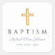 Religiöse Cross Dusty Blue Script Boy Taufe Quadratischer Aufkleber
