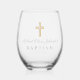 Custom Text Religious Cross Dusty Blue Script Boy Taufe Stemless Wein Glas.