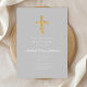 Religiöse Cross Gray Script Boy Taufe Einladung