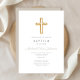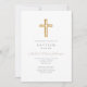 Religiöse Cross Taupe Script Boy Taufe Einladung