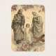 Das ist ein wunderschöner Lithograph sepia-getönter Ausdruck der Heiligen Familie, des Jesuskindes, der gesegneten Jungfrau Maria und des heiligen Joseph. Der Heilige Geist erscheint oben in Form einer Taube (Circa 1800er Jahre) mit einem Blumen- und Kreuzüberlagerungen.