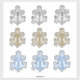 Mit einem traditionellen Bild des katholischen Marian Cross "M" symbolisiert die gesegnete Jungfrau Mary mit Lilien, in Schwarz & Weiß, Gold und Blau.