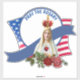 Dieses wunderschöne Kontur-Aufkleber-Blatt zeigt ein traditionelles katholisches religiöses Bild der gesegneten Jungfrau Mary, Our Lady of Fatima mit rote Rosen und der amerikanischen Flagge.