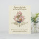 Dies ist ein wunderschönes, individuell entworfenes Vintage-Bild der gesegneten Jungfrau Maria, die den Jesus Christus mit rosa Vintagen Rose auf einem Spitzen-Design-Hintergrund hält. Das hintere Novena-Gebet ist für unsere Dame für Anfragen, die unmöglich scheinen.