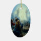 Diese ovalgeschnittene Keramik Weihnachtsfeiertagsverzierung hat eine Vintage religiöse Malerei von Jesus im Geist.