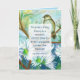 Eine Christliche Grußkarte des Beileids mit einem Bibelvers aus dem Buch der Ekclesiastes 3:1 mit einem Vogel, der einen Garten mit weißen Molkereien besucht und einen Hintergrund von beruhigenden Blautönen mit Aquarell. Im Inneren ist eine koordinierende Farbe von Blau und Text, die Sie bearbeiten können, um Ihre Bedürfnisse.
