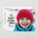 Die Weihnachtspostkarte ist mit einem schönen Typografie-Design und einem kompletten Foto ausgestattet. Die Schrift lautet "Ruhm für den Neugeborenen König", überragt mit einem leuchtenden Kreuz. Fügen Sie Ihre Namen und das Jahr unten hinzu. Der Schwarze Text überlagert ein vollständiges Foto, das horizontal angezeigt wird (zum besten Ergebnis wählen Sie ein Foto mit zusätzlichem, nicht fokussiertem Platz auf der verlassen Seite aus). Auf der Rückseite der Postkarte befindet sich Platz, um eine persönliche Nachricht an Ihre Lieben zu schreiben.