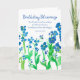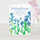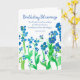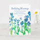 Eine hübsche Blumenkirchenkarte mit einer Bibelschrift aus Zephaniah 3:17 und mit königsblauen Wildblumen illustriert mit Aquarell dekoriert. Im Inneren befindet sich eine weitere königsblaue Blume und ein blauer Text, den Sie nach Ihren Wünschen bearbeiten können.